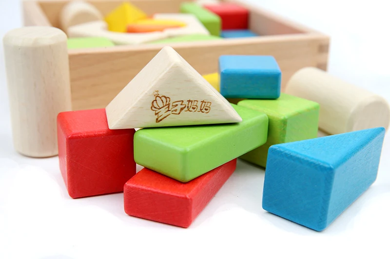 Free shipping 30 Pieces Colored Wooden Blocks set Kids Assembly Wood educational Building blocks to